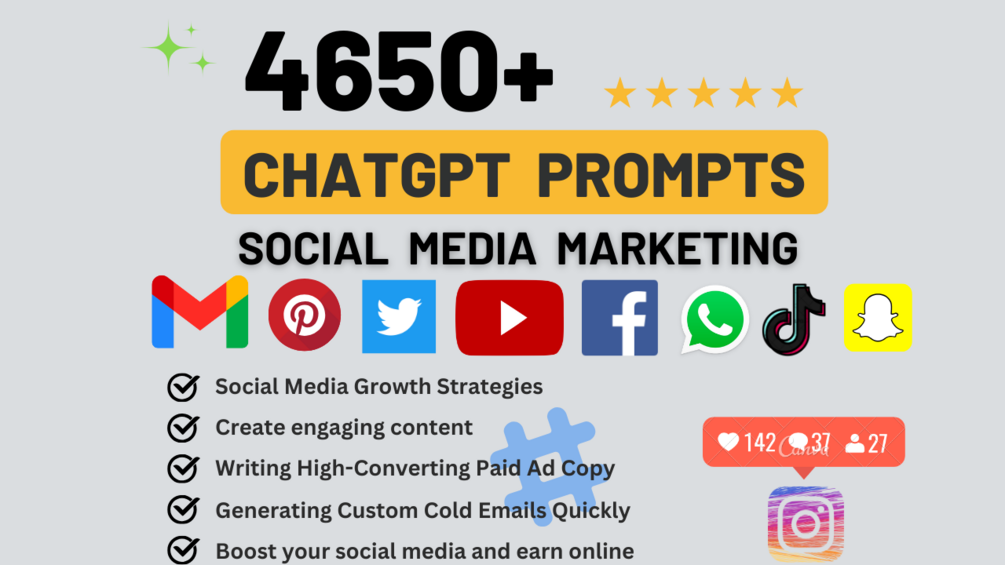 ChatGPT Social Media Marketing Bundle PLR: 4650 Prompts | TikTok | Facebook | Pinterest | Twitter | Instagram | Copy and Paste (2024)